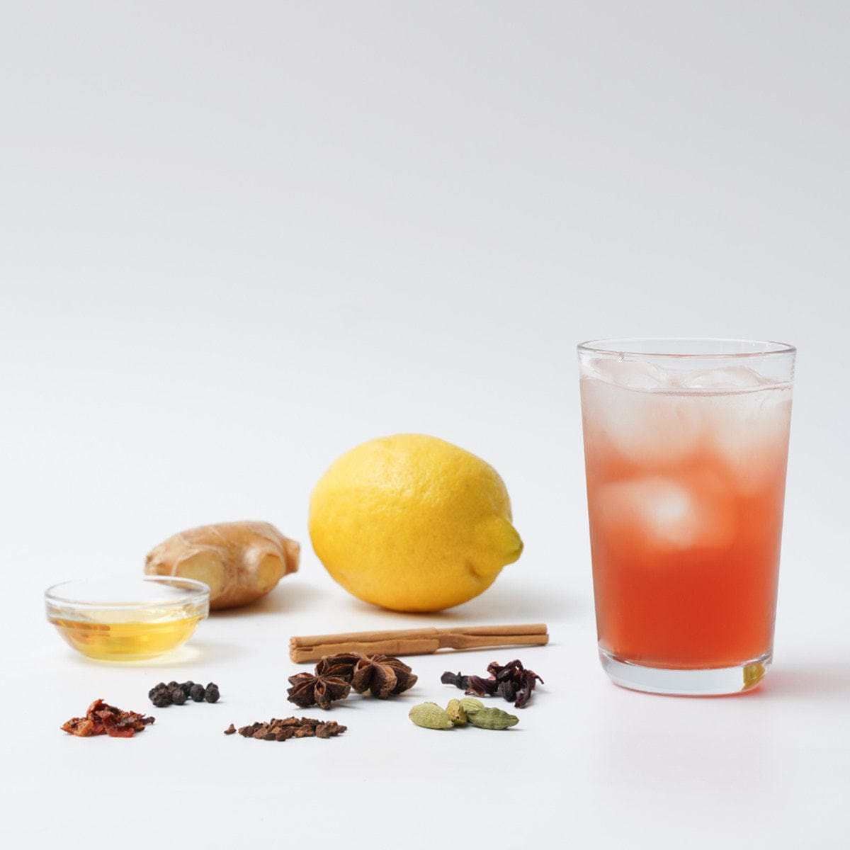 スパイスミックス:シナモン、ジンジャー、ローズヒップ、ブラックペッパー、コーラナッツ、ハイビスカス、スターアニス、カルダモン