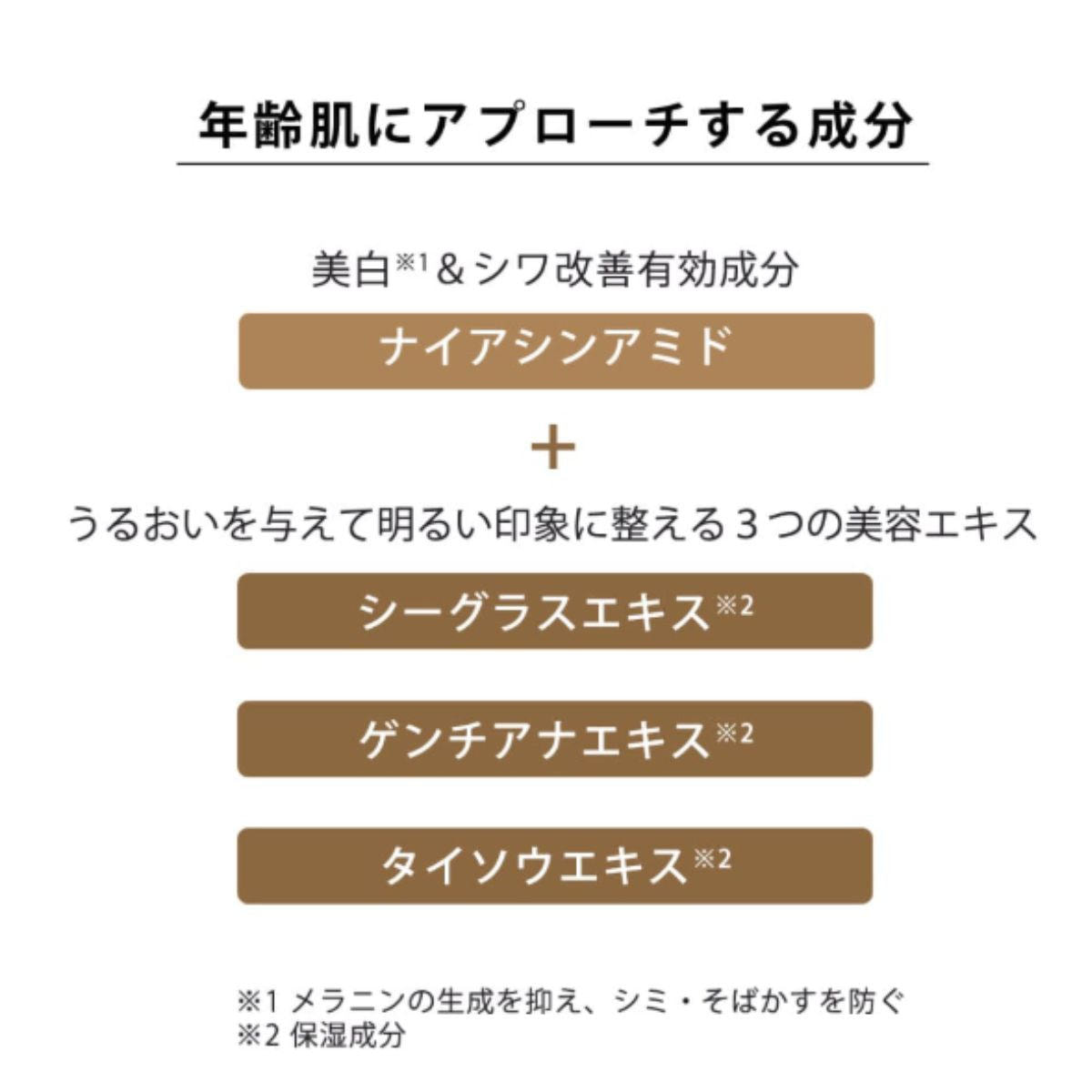 美白*や保湿に効果的な成分をナイアシンアミドと併用することで相乗効果が生まれ、肌にハリを与えます。